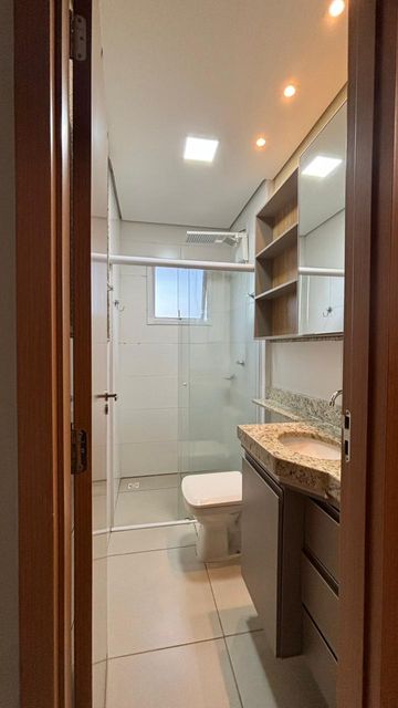 Banheiro social com armários e box