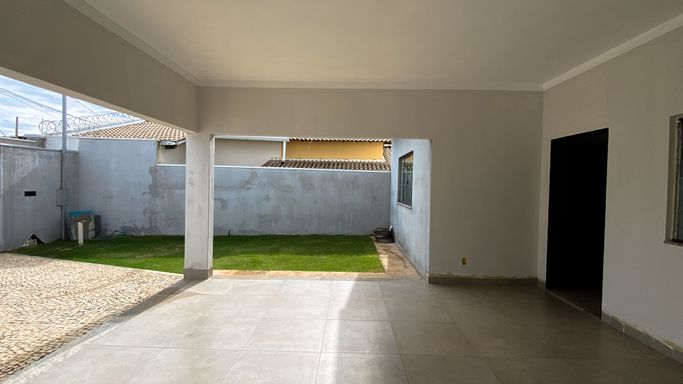 Possui vaga para até quatro veículos, sendo duas em garagem coberta. Na parte frontal, destaca-se o amplo jardim, que oferece excelente potencial para a construção de uma área de lazer completa.