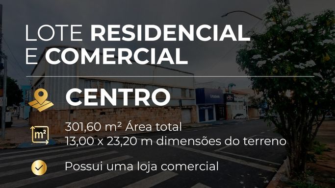 Localizado no coração do Centro, uma das áreas mais nobres e valorizadas da cidade, este lote possui 588,60m² (10,90m x 54m), oferecendo amplo espaço e infinitas possibilidades de aproveitamento. O terreno inclui uma casa simples, ideal para quem deseja utilizá-la para locação temporária, enquanto desenvolve seu projeto definitivo. Com potencial para construção comercial ou residencial, esta é uma oportunidade rara para investidores que buscam um imóvel estratégico em uma região com alto fluxo e excelente infraestrutura. Não perca a chance de adquirir um lote com localização privilegiada e grande potencial de valorização! Entre em contato para mais informações e agende sua visita!