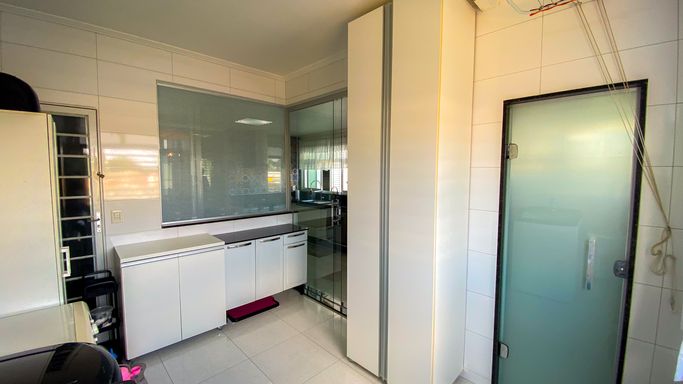 Lavanderia independente e despensa